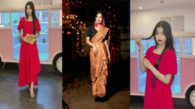 ADITI MISTRY Most Expensive Blouseless Brown Saree Live PART 2 UPDATE Completely